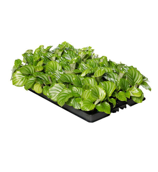 Calathea orbifolia is een prachtige, tropische bladplant, met een bossige, compacte groeiwijze. Deze aantrekkelijke Calathea heeft weelderig blad met een bont gestreept, groen en zilver kleurenpatroon. De afgeronde bladeren zijn breder dan bij de meeste Calathea’s. Als typische Calathea verdient ook C. orbifolia de bijnaam 'levende plant' omdat het 's nachts de bladeren sluit of opricht en ze 's morgens weer ontkrult of laat zakken. Calathea orbifolia komt van oorsprong voor als groenblijvende, vaste plant in tropische gebieden van Zuid-Amerika. Daar groeit het in de schaduwrijke, vochtige onderlagen van regenwouden. Het is een stijlvolle en gemakkelijke kamerplant. Calathea orbifolia is ook bekend als Pauwenplant, vanwege het bijzondere, exotische bladpatroon. Andere internationaal gebruikte namen voor Calathea orbifolia zijn: Goeppertia orbifolia; Peacock plant; Zebra plant. Evanthia heeft Calathea orbifolia startmateriaal het hele jaar door beschikbaar, als jonge plant uit weefselkweek. Vraag ons team naar de Calathea teelthandleiding voor commerciėle productie. Bekijk alle Calathea’s in het Evanthia assortiment.