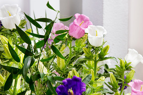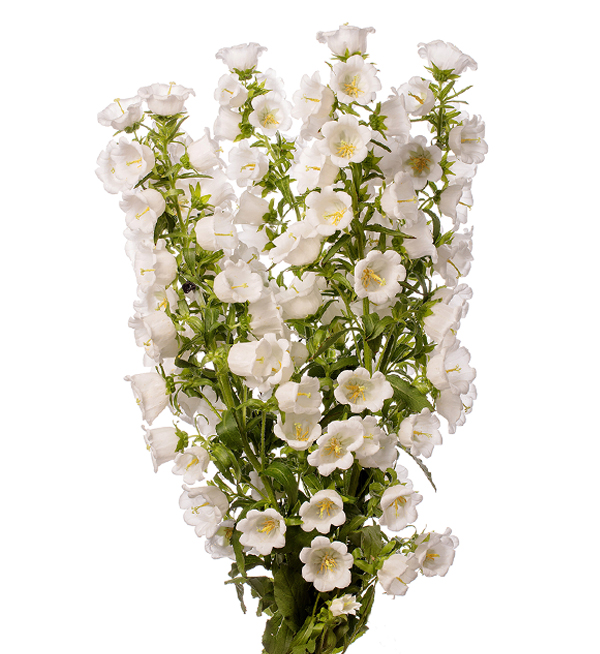 Campanula Big Ben White heeft een opvallende bloemgrootte en een stralend witte kleur. Vele klokvormige bloemen sieren de lange stelen. Big Ben is een hoogproductieve Campanula serie, die bijna jaarrond geproduceerd kan worden. Dankzij de rijke bloei, de uniforme bloeiwijze van de variėteiten onderling en de zeer korte teeltduur (10-14 weken na planten) heeft Big Ben snel aan populariteit gewonnen. De naar boven gerichte, klokvormige bloemen, hebben stevige bloemblaadjes die goed standhouden tijdens transport en in verwerking. De lange stelen zijn gemakkelijk te oogsten en eenvoudig te toe te passen in romantische veldboeketten en trendy monobossen met een zeer lang vaasleven. Ontdek ook de andere kleuren uit deze prachtserie.