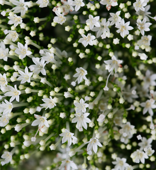 Trachelium Corine White heeft prachtige witte stervormige bloemetjes in goed gevormde bloemschermen. De Trachelium Corine serie blinkt uit in uniformiteit en heeft een goede vertakking en een snelle knopaanleg. Corine kan bijna jaarrond geproduceerd worden. Waar andere variėteiten soms moeite hebben met knopaanleg in donkere, koelere periodes, is dit juist iets waar Corine goed op scoort. Plant de jonge planten van Corine dan ook zeker in de herfst en de vroege winter, voor een snelle productie en een rijke bloei van midden winter tot in het vroege voorjaar. Bekijk alle kleuren uit deze prachtige serie.