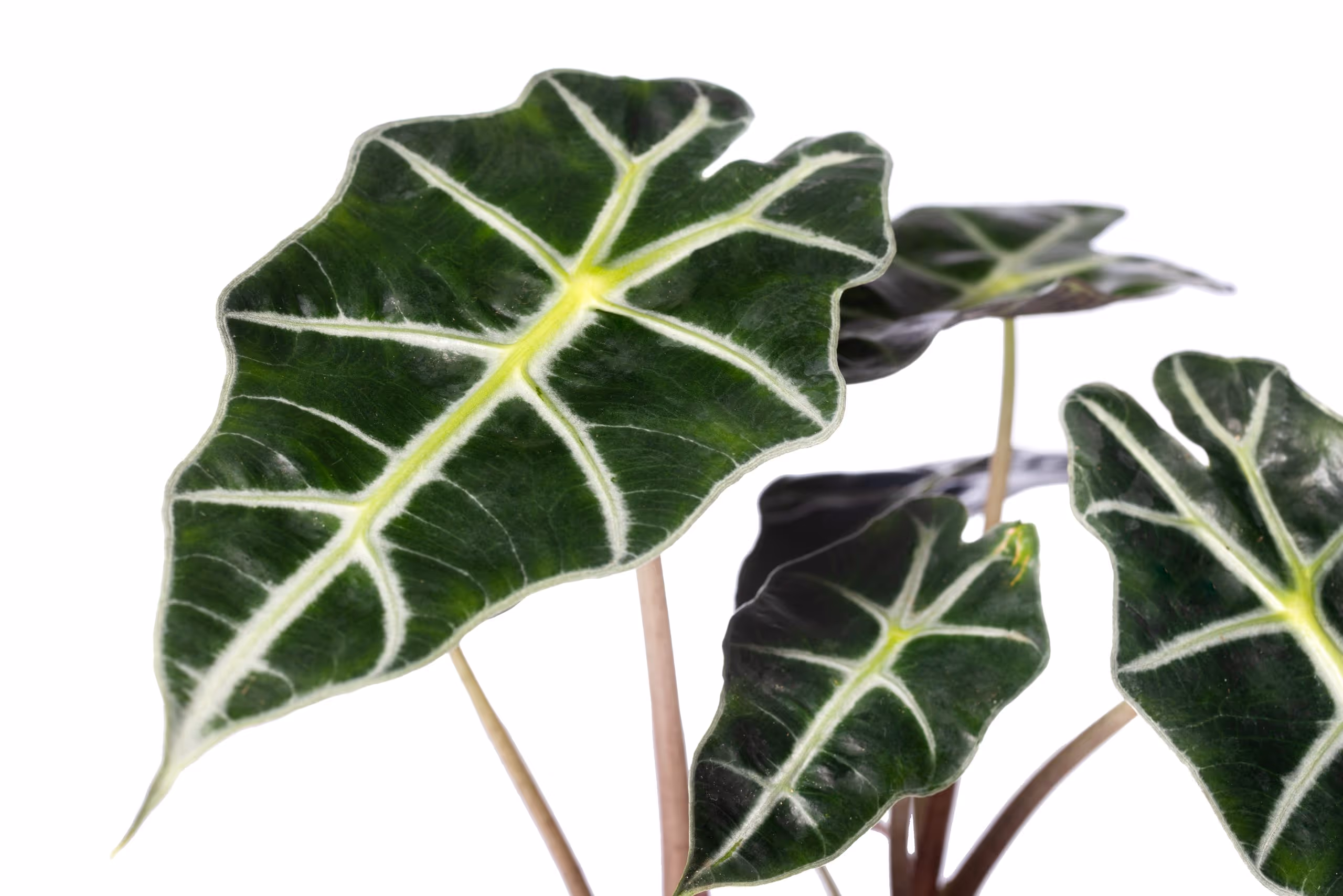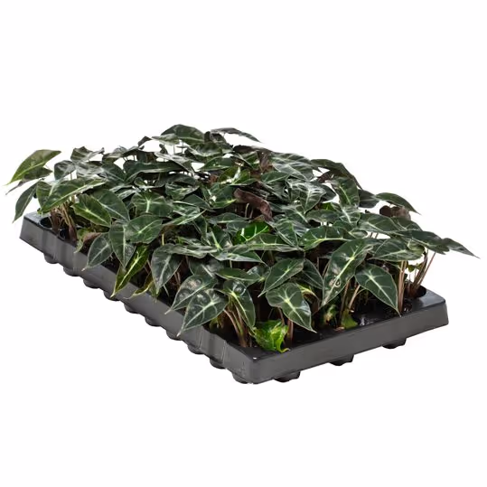 Alocasia Dwarf Amazonica is a striking, tropical foliage plant with a compact growth habit. The distinctive dark green leaves with almost illuminating leaf veins are real eye-catchers! Its compactness makes A. Dwarf Amazonica an excellent houseplant. Alocasia originates as an evergreen, herbaceous perennial in the tropical and temperate parts of Southeast Asia where it grows in the shady, moist understories of rainforests. Alocasia is also known as Elephant's Ear. Other internationally used names for Alocasia Dwarf Amazonica are: Amazonian Elephant's Ear and African Mask Plant. Evanthia has starting material of Alocasia Dwarf Amazonica available all year round, as young plants from tissue culture. Ask our team for the Alocasia cultivation manual for commercial production. View all Alocasia in the Evanthia range.