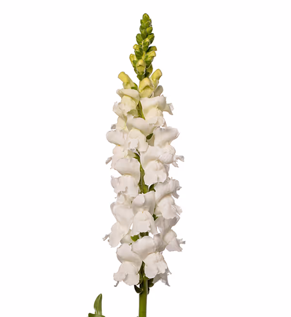 Antirrhinum Antibes Early White I offers long well-filled spikes with white flowers. The Antirrhinum Antibes I series is ideal for energy-efficient cultivation in cool periods with low light intensity. Antibes can be planted in the greenhouse in late summer and in winter. Experience the abundant flowering and top quality flower stems from mid autumn to mid spring. Antibes has a wide range of colours and a high level of uniformity in plant habit and flowering time. Combine with the other Antirrhinum series of Evanthia for a seamless year-round production schedule. Previously: Animation Early White I