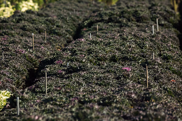 Brassica Empire Katya has intense purple, heavily fringed leaves that change to dark green towards the outside. Katya has medium to late leaf colouration. The Brassica Empire series is the latest generation of high quality ornamental cabbages, which has rapidly made a name for itself. Throughout the floriculture supply chain, Brassica Empire is now widely appreciated. From the wholesale to retail and florists, there is an active demand for Empire. And not without reason. Extensive breeding efforts have resulted in a Brassica series with a great appearance, tall sturdy stems of at least 80 cm and a hardier leaf structure. Independent testing by Royal FloraHolland has proven the Empire series to be less sensitive to diseases, with a vaselife far above average and a strong reduction of the typical Brassica odour. Ask for the Royal FloraHolland research report to learn more >>. Sow outside in spring, after which you can continue sowing in the greenhouse during summer. With a cultivation time of only 14 to 16 weeks, a high level of uniformity and an ideal stem length, Brassica Empire ensures an efficient harvest and a higher average percentage of harvestable product. After harvest, the vase life of the Empire series is also above average. Discover all varieties of the Brassica Empire F1 series and be amazed by the round-leaved, serrated or fringed varieties with trendy earthy colour combinations.