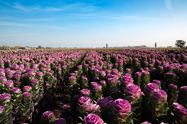 Brassica Empire Olga is a beautiful purple/red ornamental cabbage, with dark green outer leaves. The rounded leaves form a compact rosette, with a medium to late leaf colouring speed. The Brassica Empire series is the latest generation of high quality ornamental cabbages, which has rapidly made a name for itself. Throughout the floriculture supply chain, Brassica Empire is now widely appreciated. From the wholesale to retail and florists, there is an active demand for Empire. And not without reason. Extensive breeding efforts have resulted in a Brassica series with a great appearance, tall sturdy stems of at least 80 cm and a hardier leaf structure. Independent testing by Royal FloraHolland has proven the Empire series to be less sensitive to diseases, with a vaselife far above average and a strong reduction of the typical Brassica odour. Ask for the Royal FloraHolland research report to learn more >> Sow outside in spring, after which you can continue sowing in the greenhouse during summer. With a cultivation time of only 14 to 16 weeks, a high level of uniformity and an ideal stem length, Brassica Empire ensures an efficient harvest and a higher average percentage of harvestable product. After harvest, the vase life of the Empire series is also above average. Discover all varieties of the Brassica Empire F1 series and be amazed by the round-leaved, serrated or fringed varieties with trendy earthy colour combinations. Combine Brassica Empire Olga with Empire Anna and Empire Agathana for a 'Bestseller Collection'.