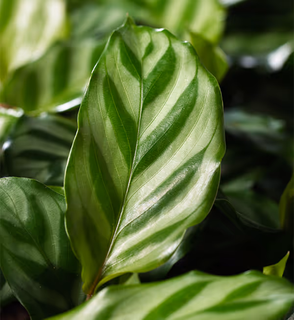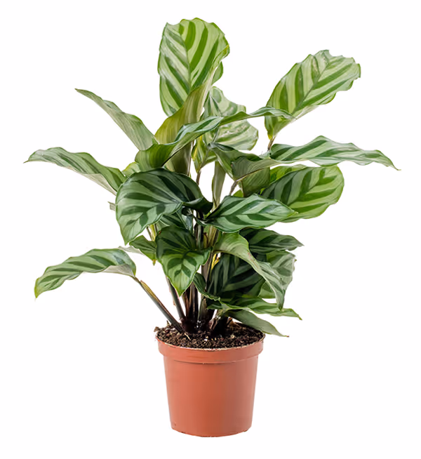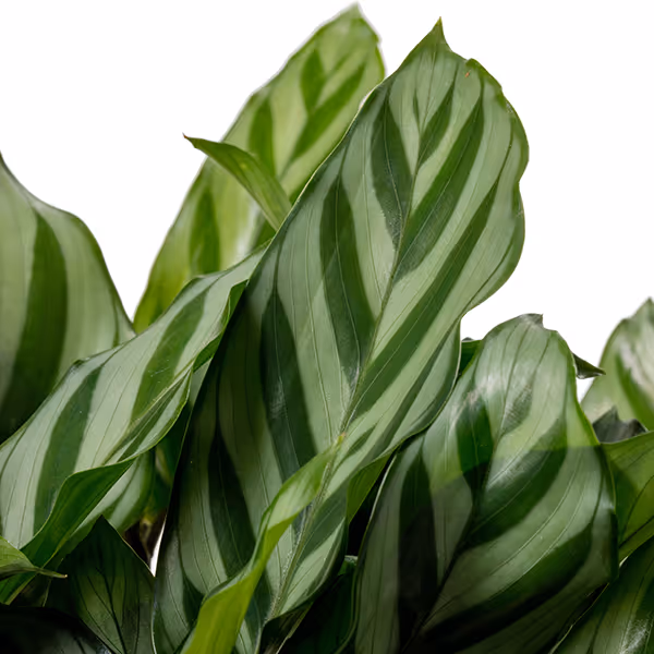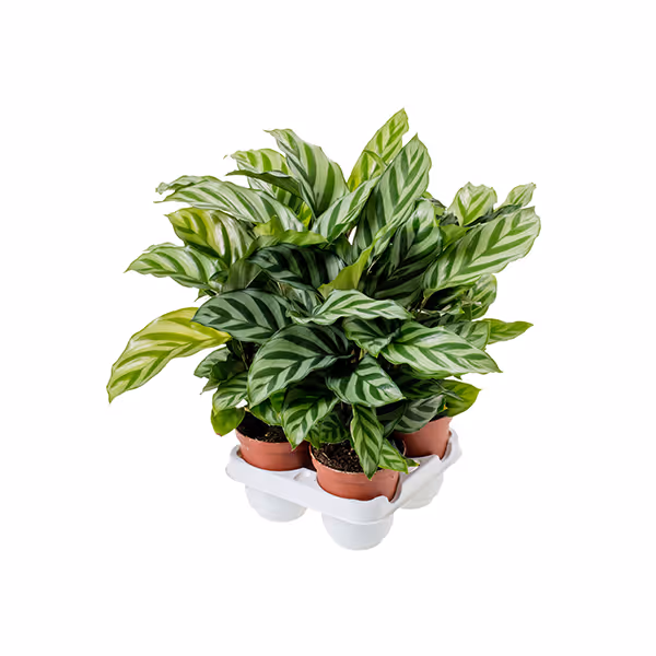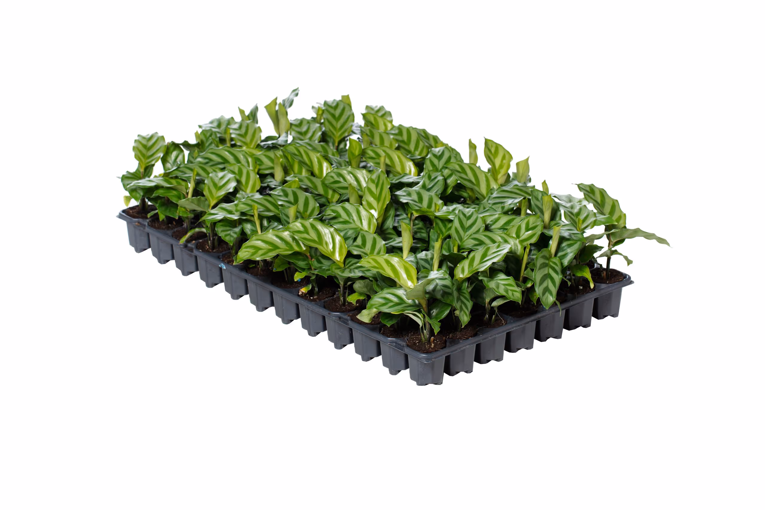 Calathea concinna Freddie is a spectacular, tropical foliage plant with a upright, bushy habit and a fresh appearance. Freddie has highly contrasting light green leaves and dark green stripes. As a typical Calathea, Freddie too earns its nickname as ‘living plant’ because it closes or rises its leaves at night and uncurls or lowers them again in the morning. Calathea concinna is native to tropical areas of Brazil, where it grows as an evergreen perennial in the shady, damp understories of rainforests. It makes for an elegant and easy houseplant. Calathea concinna Freddie is commonly known as Goeppertia concinna Freddie, Zebra plant or Peacock plant, because of its significant, exotic leaf pattern. Evanthia has Calathea concinna Freddie starting material available all year round, as tissue culture young plants. Ask our team for the Calathea cultivation manual for commercial production. Check out all Calatheas in the Evanthia range.