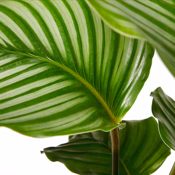 Calathea orbifolia is an exquisite tropical foliage plant with a bushy, clump-forming habit. This attractive, Calathea has bold-striped, luxurious foliage with a strongly-contrasting green and silver colour pattern. The rounded leaves are broader than most Calatheas. As a typical Calathea, C. orbifolia too earns its nickname as ‘living plant’ because it closes or rises its leaves at night and uncurls or lowers them again in the morning. Calathea orbifolia is native to tropical areas of South America, where it grows as an evergreen perennial in the shady, damp understories of rainforests. It makes for a stylish and easy houseplant. Calathea orbifolia is commonly known as Goeppertia orbifolia, Peacock plant or Zebra plant, because of its striking exotic leaf pattern. Evanthia has Calathea orbifolia starting material available all year round, as tissue culture young plants. Ask our team for the Calathea cultivation manual for commercial production. Check out all Calatheas in the Evanthia range.