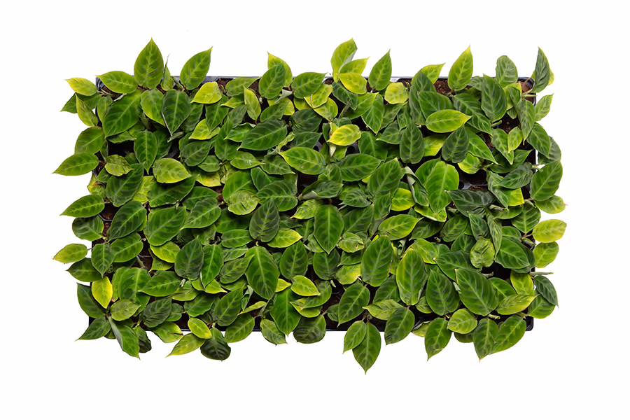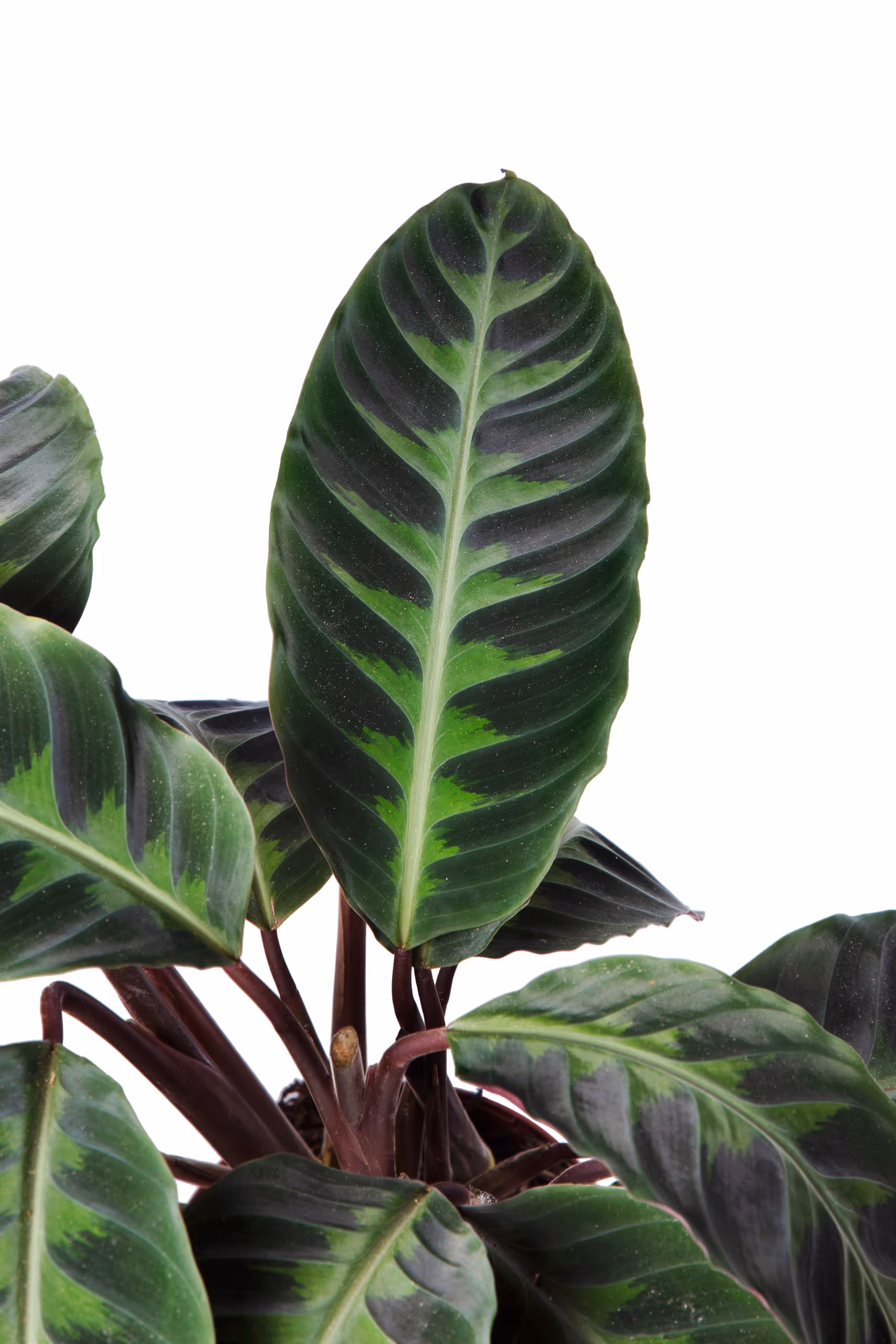 Calathea warscewiczii is a decorative, tropical foliage plant, with a compact growth habit. C. warscewiczii is beautifully patterned with bright green and dark green. The elongated leaves have a matt finish and contrasting velvety purple undersides. As a typical Calathea, C. warscewiczii also deserves the nickname 'living plant' because it closes or lifts its leaves at night and uncurls or lowers them again in the morning. Calathea warscewiczii originates as an evergreen perennial in tropical regions of Brazil. There it grows in the shady, damp understory of rainforests. Other internationally used names for Calathea warscewiczii are: Prayer plant and Goeppertia warszewiczii. Evanthia has Calathea warscewiczii starting material available year round, as young plants from tissue culture. Ask our team for the Calathea cultivation manual for commercial production. View all Calatheas in the Evanthia assortment.