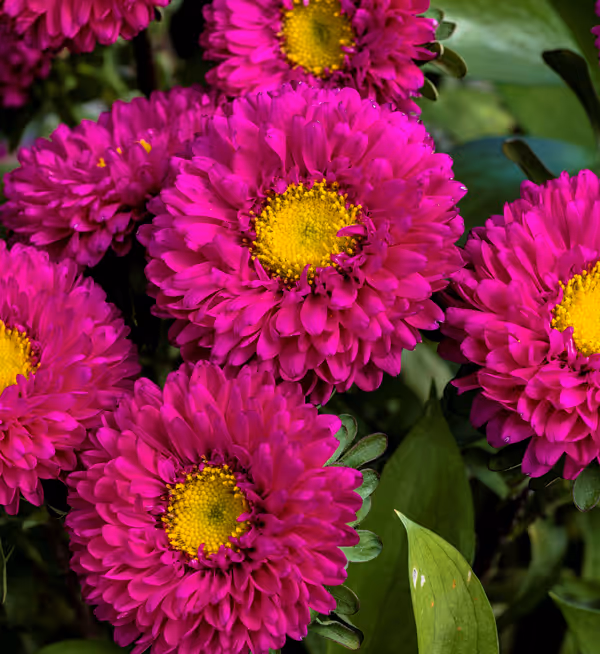 The Callistephus Matsumoto series is an early flowering strain with semi-double flowers and a yellow center on strong upright stems. Fusarium resistant. Check out all Callistephus varieties Evanthia has to offer.