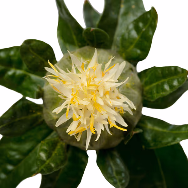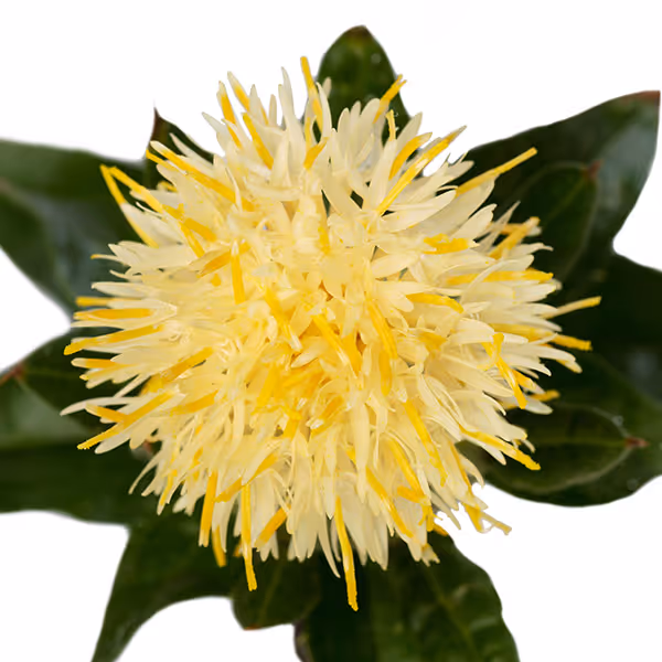 Carthamus Ice Cream has thistle-like flowers with a unique light vanilla colour and fresh green leaves. In terms of plant structure and stem length, this variety resembles Carthamus Zanzibar, but Ice Cream can be harvested about a week earlier. Sow indoors in a greenhouse or directly outdoors, preferably under a tunnel. Sow this Carthamus from late winter to late summer, for a harvest period from early summer to mid-autumn. The large buds of Carthamus Ice Cream are supported by very strong stems, which also prove their strength during transport, processing and in the vase. This versatile Carthamus is suitable for fresh and dried bouquets, and can also be harvested green at an earlier stage.