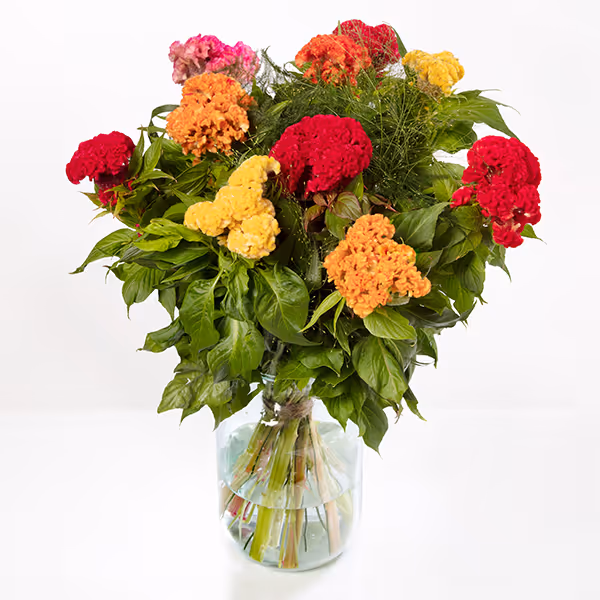 Celosia Captain Red has a beautiful intensely-coloured flower. But that is not all. The red colour also runs through to the dark stem and into the veins of the dark green leaves. Overall spectacular! Beauty & Brains, the Celosia Captain series has both! The large round spheres of Celosia Captain resemble the structure of a brain, and a very beautiful one we might add! In addition, the Captain series guarantees high quality. This series should preferably be planted from late spring to late summer and with a bit more spacing, because of the robust plant structure and large flowers. After a cultivation period of 10 to 14 weeks, the Celosia Captain series can be harvested until late autumn. Discover all Captain colours and the sparkling mix.