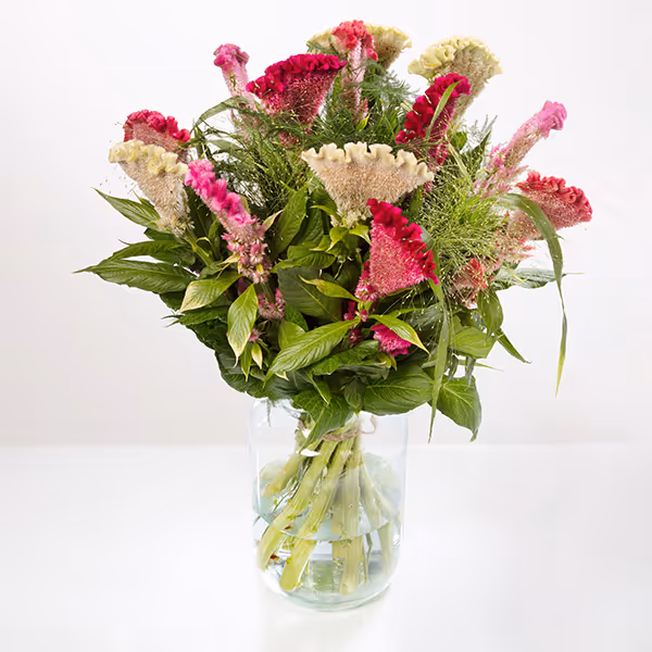 Celosia Martine Scarlet has a soft, light red colour. The Celosia Martine series is very uniform, has robust stems and is resistant to thrips. The series consists of an original colour range. The decorative, remarkably flat, fringed flower combs bring an interesting graphic structure to arrangements and bouquets. Plant Celosia Martine in the greenhouse from early spring until late summer. With a cultivation period of 8 to 13 weeks, you can harvest from spring to late autumn.