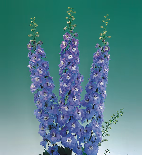Delphinium Aurora has an excellent uniformity and hybrid vigor. Tightly packed flowers grow on sturdy stems. Can be grown as cut flowers and potted plants.