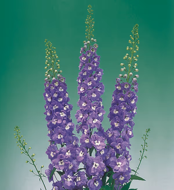 Delphinium Guardian makes it easy to program your crop to meet shipping dates. Very uniform blooming within each variety, especially under short days. Works well as a tall landscape/perennial variety, as a commercial cut flower, and in potted plant programs. Up to 6 weeks faster from transplant to bloom than O.P. types for more turns per sq./metre of greenhouse space. Also suitable as a greenhouse cut flower or for garden cut flower production. As a greenhouse cut flower, Guardian can be grown under the same conditions as dianthus and snapdragons. Produces excellent stem quality for good cut flower shippability. Check out all Delphinium series, available at Evanthia.