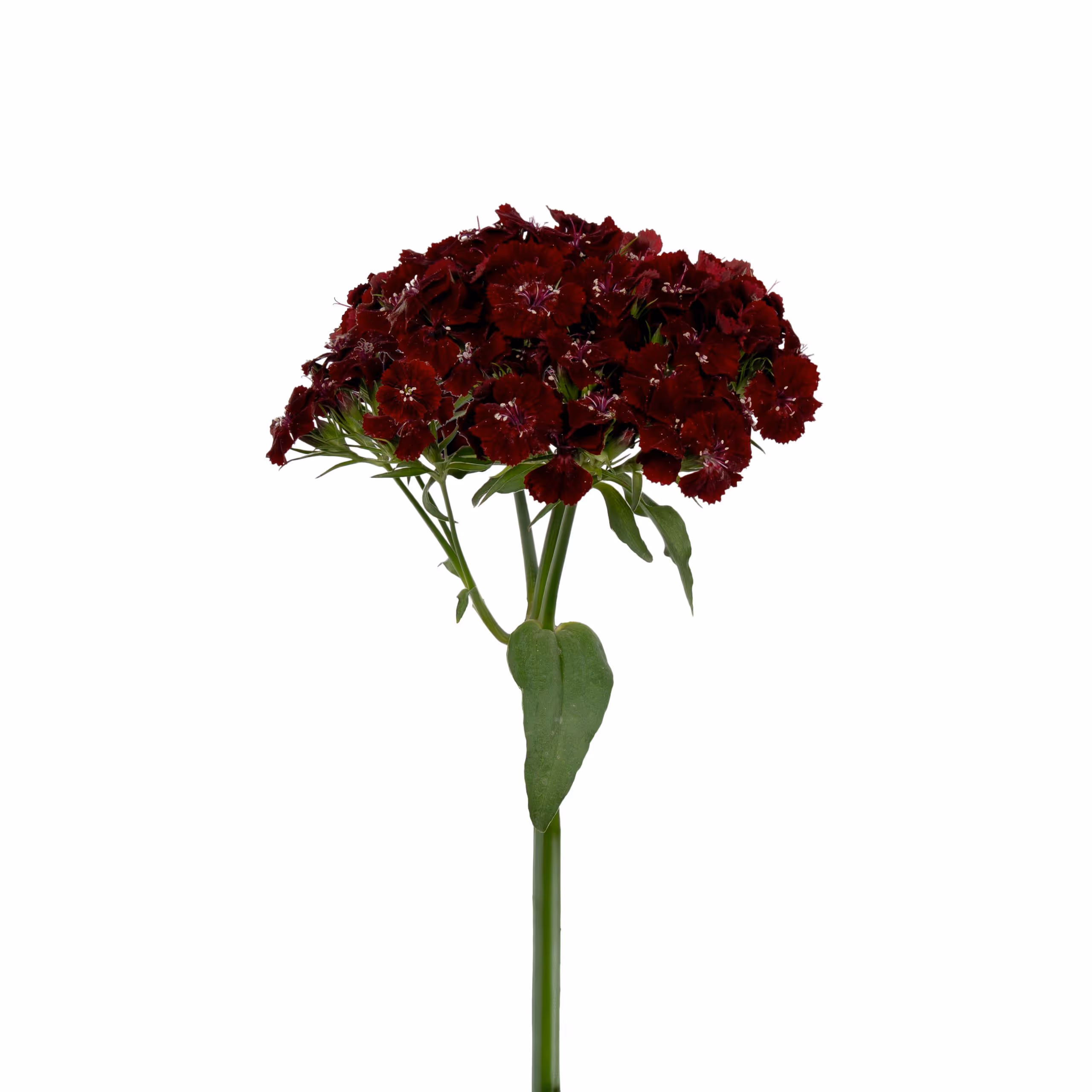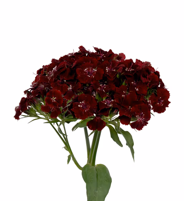 Dianthus Barbienne Burgundy is the dark red variety of the Dianthus Barbienne series. Dianthus Barbienne is a highly productive biennial series with long, sturdy stems and large, beautifully formed, dense umbels. The different varieties are uniform in flowering time and are more resistant to rust than standard Dianthus series. Sow Barbienne in the greenhouse from late summer to early autumn, for flowering from late winter to mid spring. Sow outside in mid summer for harvest from mid spring to early summer. Under tunnels and with young plants as starting material, you can even start earlier than that. Dianthus Barbienne needs a cold period to bloom, but is then easy to plan and flowers profusely with high quality flower stems. Discover all the cheerful colours of the Dianthus Barbienne series.