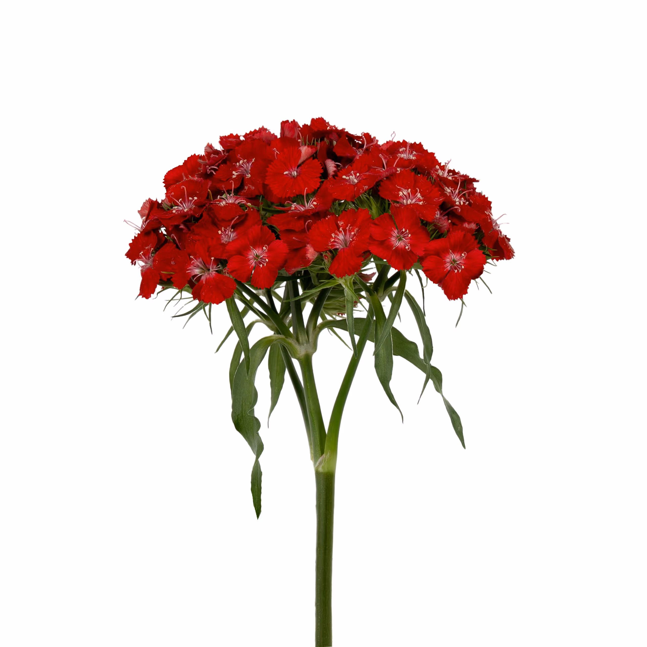 Dianthus Barbienne Scarlet is a stunning scarlet/red variety of the Dianthus Barbienne series. Dianthus Barbienne is a highly productive biennial series with long, sturdy stems and large, beautifully formed, dense umbels. The different varieties are uniform in flowering time and are more resistant to rust than standard Dianthus series. Sow Barbienne in the greenhouse from late summer to early autumn, for flowering from late winter to mid spring. Sow outside in mid summer for harvest from mid spring to early summer. Under tunnels and with young plants as starting material, you can even start earlier than that. Dianthus Barbienne needs a cold period to bloom, but is then easy to plan and flowers profusely with high quality flower stems. Discover all the cheerful colours of the Dianthus Barbienne series.