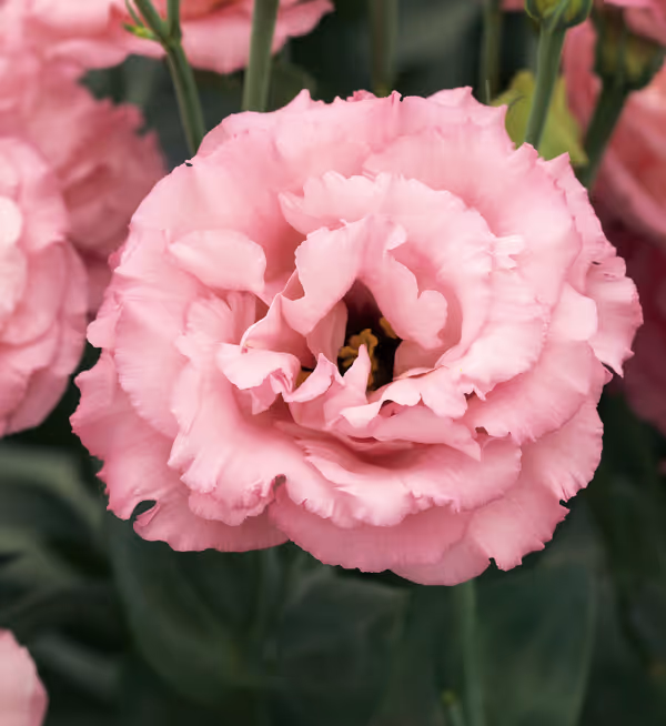 Lisianthus Corelli features large, double flowers with fringed, curly petals. The series includes middle to mid-late blooming varieties, with most being mid-late.