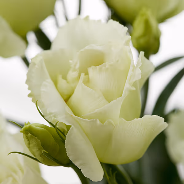 Lisianthus Cessna Green III has a refined, soft yellow/green colour. A beautiful shade for an irresistible natural look in bouquets and arrangements. Lisianthus Cessna is a highly productive top series with medium to large double flowers in a wide colour spectrum. A major advantage of Cessna is that the varieties in this series grow easily, even in less favourable conditions. The series develops a solid root system, which ensures good resistance. The varieties are uniform among themselves in terms of plant structure and cultivation time. All this makes Cessna a very solid series. Cessna is a group III Lisianthus series, with a cultivation time of only 11 to 16 weeks. By planting from mid spring to early summer, this series can be harvested during the summer months. With assimilation lighting, the Cessna series can be grown all year round.