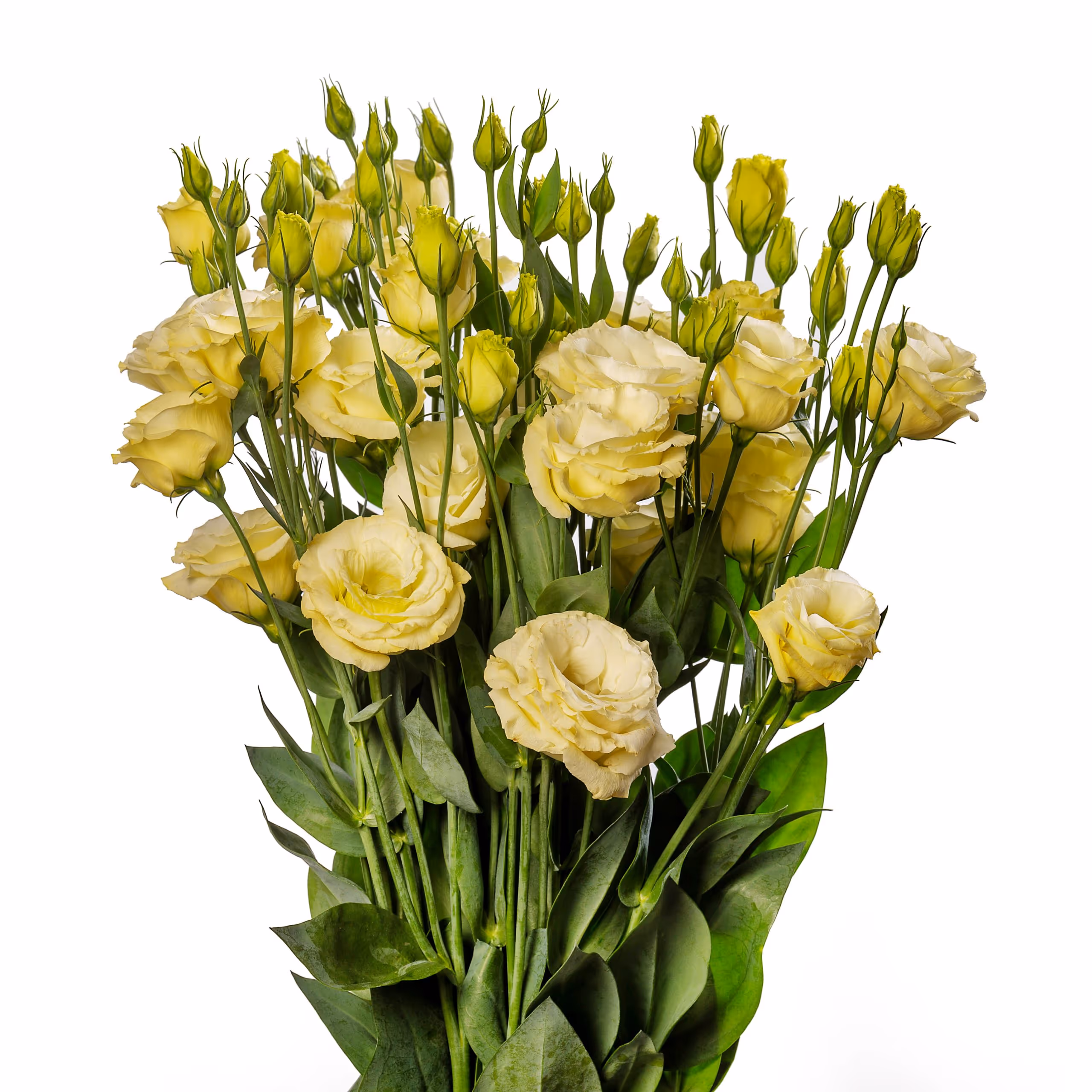 Lisianthus Evanthi Yellow II is a beautiful pastel yellow variety with double flowers, strong stems and an excellent vase life. With the Lisianthus Evanthi series, Evanthia has succeeded in developing a series that is considerably more resistant to Botrytis. With firm petals, optimal branching in the top of the stem and an ideal positioning of flowers and buds, the robust Evanthi series has proven itself. Evanthi Yellow is a group II Lisianthus, with a cultivation period of only 10 to 15 weeks. By planting from late winter to early summer, you can harvest this variety from mid spring to autumn. With assimilation lighting, the entire Evanthi series can be grown throughout the year. Also check out Evanthi Purple II-III and Evanthi White Wink III.