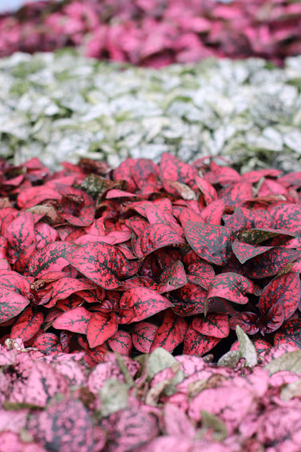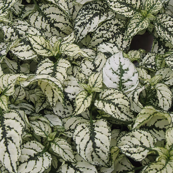 Hypoestes phyllostachya Coloratus® White is a fun, tropical foliage plant, with a neat and compact habit and a very playful look. It has heart-shaped leaves, with colourful dark green and bright white speckles and blotches. Hypoestes phyllostachya is native to tropical Madagascar, where it grows as an herbaceous perennial in shaded areas where it can form dense carpets of vegetation in the understorey layers of woodlands and rainforests. Hypoestes makes for a fun evergreen houseplant, with a nice mix of all colours in a windowsill, for example. As an annual it’s great for patio pots and garden beds too. Hypoestes phyllostachya is commonly known as Polka dot plant. Other internationally used common names for Hypoestes phyllostachya are: Baby’s Tears, Flamingo plant, Freckle Face, Measles plant. Evanthia has Hypoestes phyllostachya Coloratus® White starting material available all year round, as seed and young plants from seed. Ask our team for the Hypoestes cultivation manual for commercial production. Check out all Hypoestes in the Evanthia range.