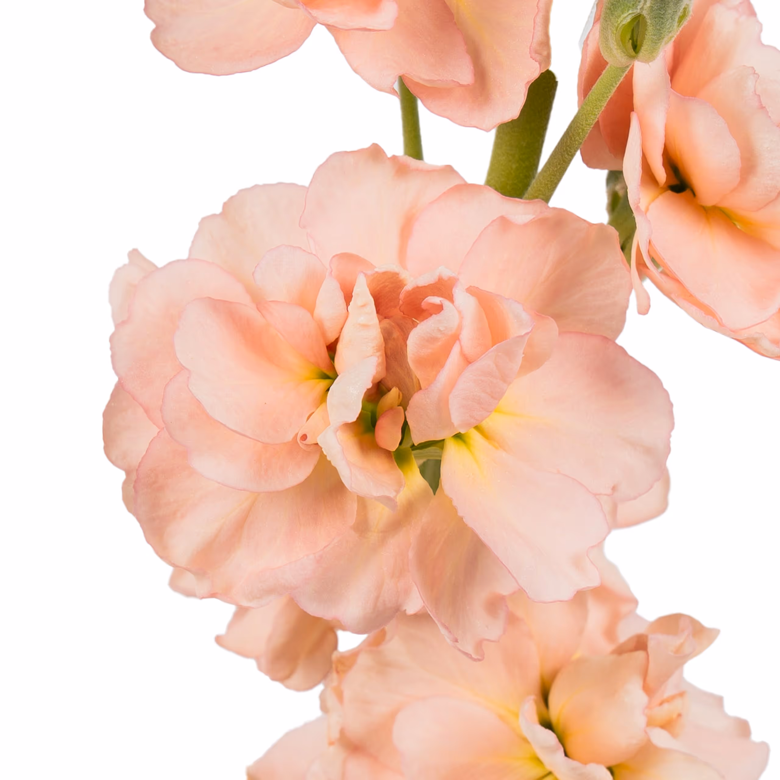 Two worlds meet... Coselja is a cross between a European and a Japanese Matthiola type. This results in a class of its own with darker green, more oval shaped leaves and somewhat larger flowers. The stems are longer, somewhat woodier and more robust, which ensures an excellent vase life. Matthiola Coselja Apricot produces apricot-coloured flower spikes with a sweet fragrance. You plant the Coselja series in winter until late spring for top quality from spring to summer. No fuss or extra work. The Matthiola Coselja series is easy to select for doubleness after a cold treatment, so you will start with an excellent series with 100% double flowers.