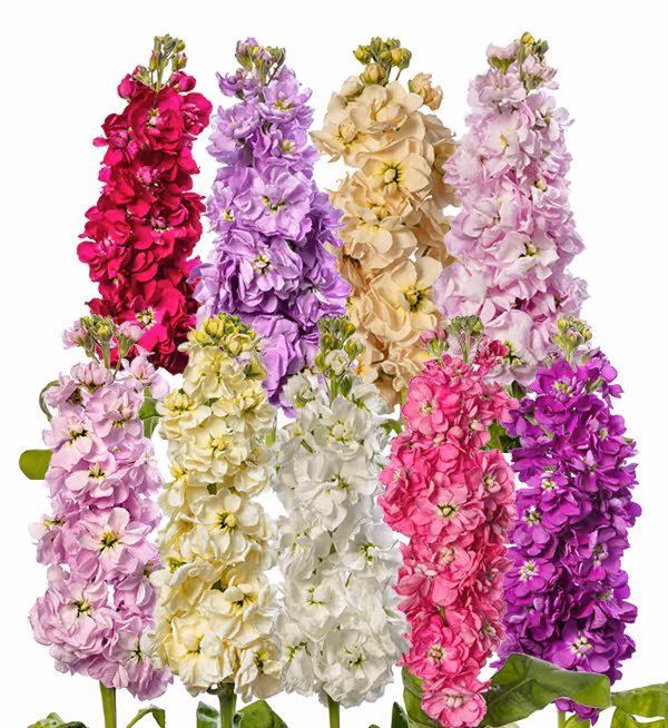 The Matthiola Jordyn Mix offers a beautiful uniform mix of soft pastel shades and more intense colours. The well-filled flower spikes are sweetly scented. The Matthiola Jordyn series is developed for an early start. Plant the Jordyn series early in winter until late spring, for an extra early harvest in spring to well into the summer. Jordyn is known for a powerful plant structure and high quality firm flower stems. No fuss or extra work. The Matthiola Jordyn series is easy to select for doubleness after a cold treatment, so you will start with an excellent series with 100% double flowers.