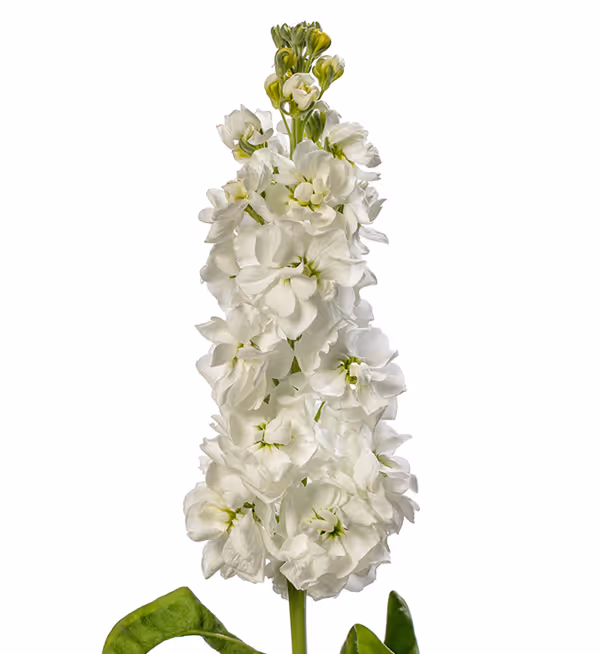 Matthiola Jordyn White produces bright white well-filled flower spikes with a sweet fragrance. The Matthiola Jordyn series is developed for an early start. Plant the Jordyn series early in winter until late spring, for an extra early harvest in spring to well into the summer. Jordyn is known for a powerful plant structure and high quality firm flower stems. No fuss or extra work. The Matthiola Jordyn series is easy to select for doubleness after a cold treatment, so you will start with an excellent series with 100% double flowers.