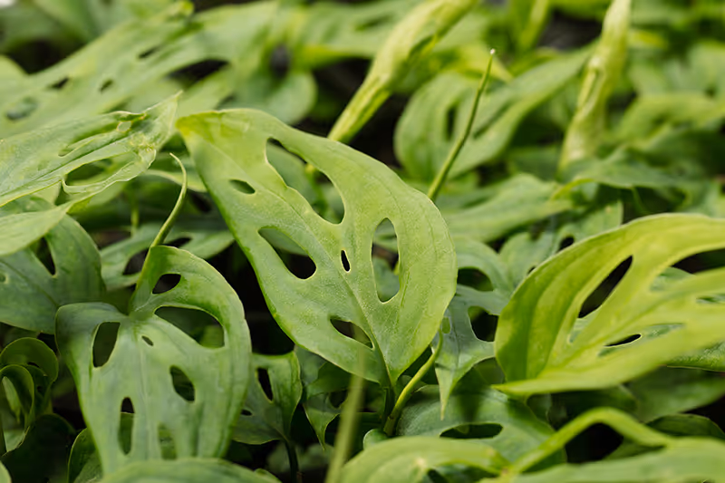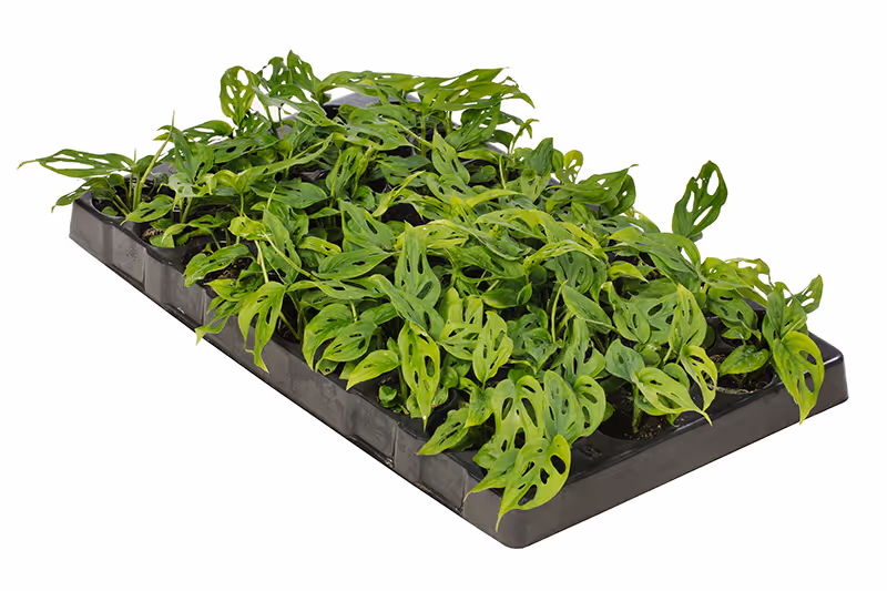 Monstera adansonii is a beautiful, tropical foliage plant with heart-shaped leaves. M. adansonii is smaller than the dwarf type Monstera deliciosa. Unlike other Monsteras, M. adansonii only develops leaf perforations and no leaf notches. The holes are visible at a very early stage. Monstera adansonii is native to South and Central America, where it grows as an evergreen perennial in tropical rain forests. Monstera adansonii is very suitable as a decorative houseplant. Monstera adansonii is also known as Swiss cheese plant. Evanthia has Monstera adansonii starting material available all year round, as young plants from tissue culture. Ask our team for the Monstera cultivation manual for commercial production.