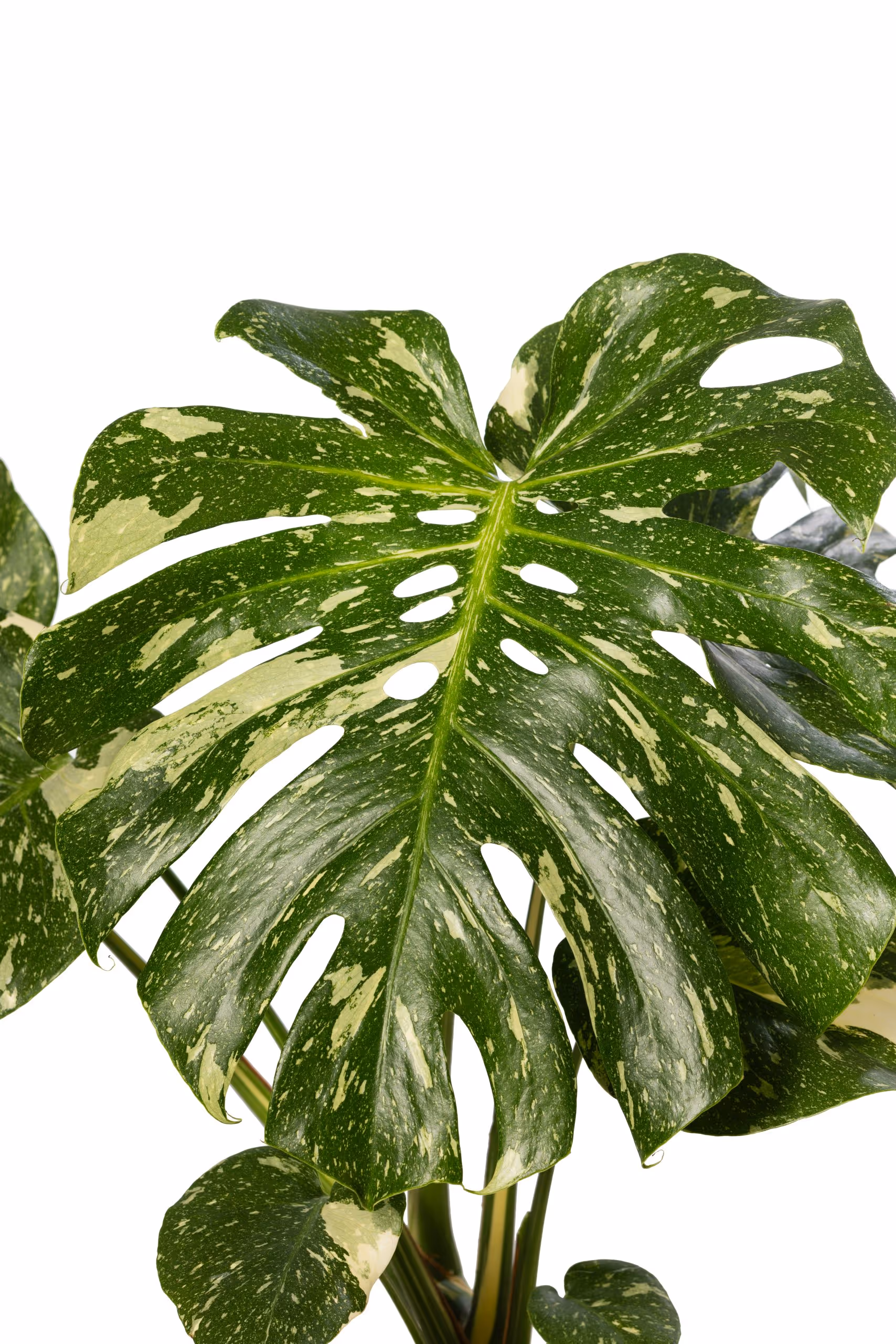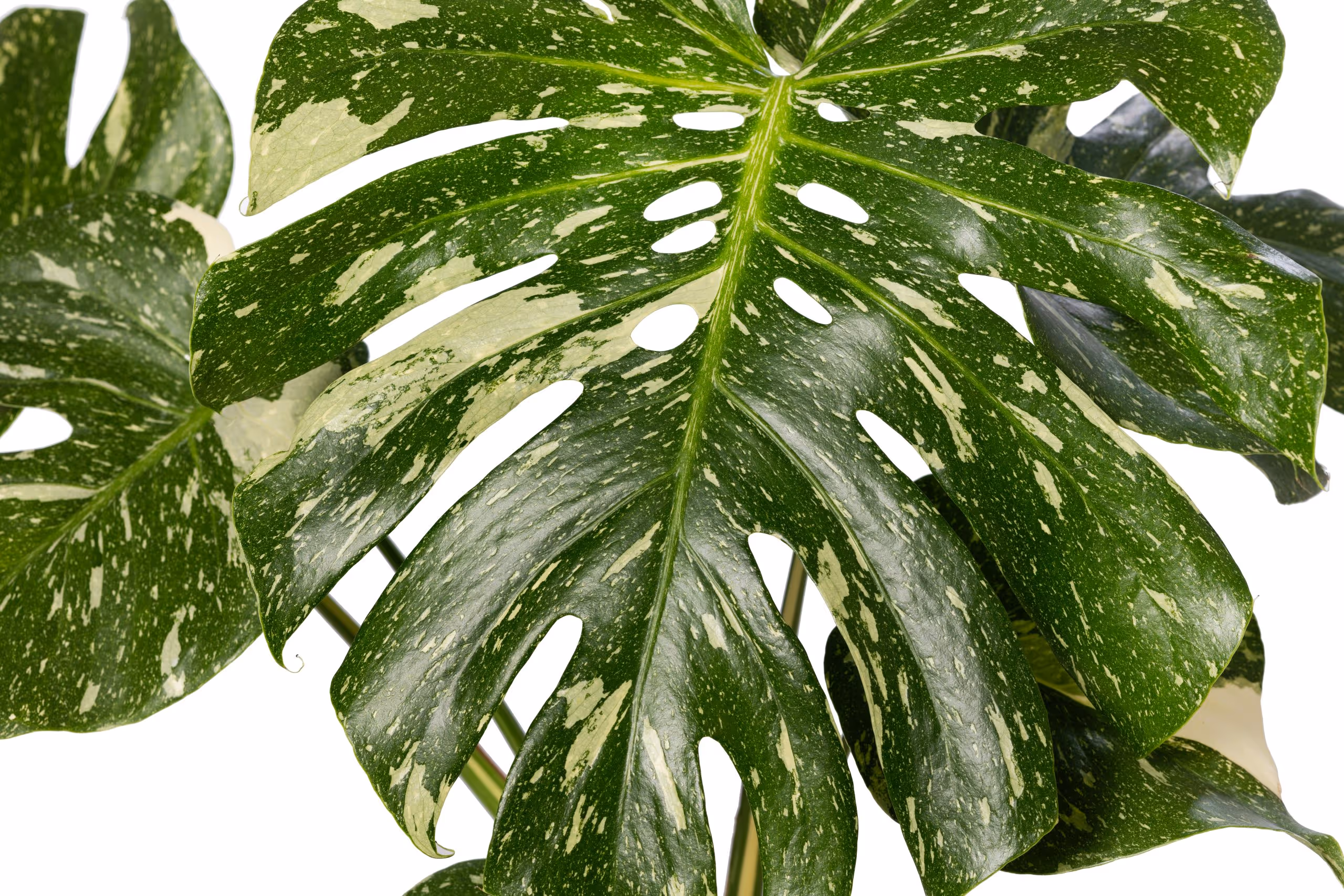Monstera Thai Constellation is a beautiful, tropical foliage plant with large, heart-shaped leaves and a strikingly variegated pattern in shades of cream and green. Monstera Thai Constellation has both leaf perforations and deeper leaf notches, adding to its decorative appearance. Monstera has its origins in Southeast Asia. Monstera Thai Constellation is a real eye-catcher and is also called ‘Variegated Monstera’ internationally. Evanthia has Monstera Thai Constellation starting material available all year round, as young plants from tissue culture. Ask our team for the Monstera cultivation manual for commercial production.