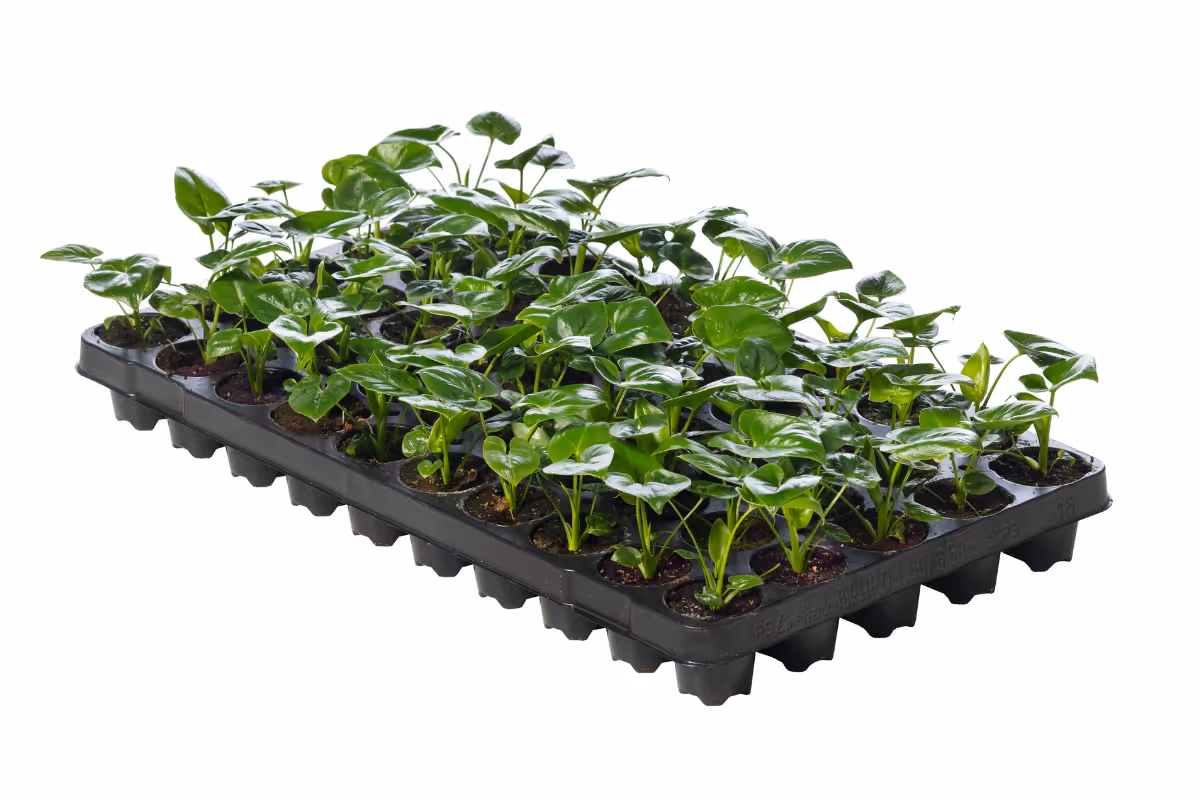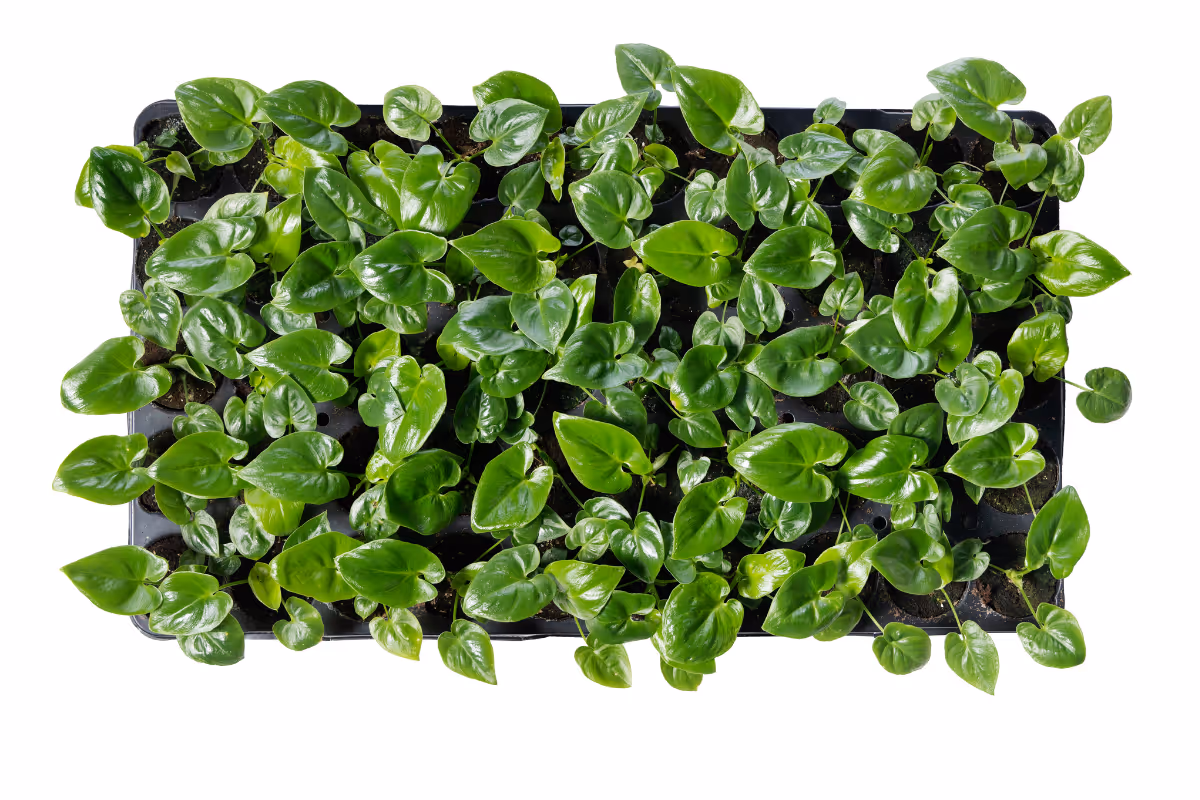 Philodendron Fun Bun, a.k.a. Thaumatophyllum spruceanum, is an non-vining Philodendron with an upright habit. Fun Bun is a highly decorative, tropical foliage plant. It has long, slender stems with a fan of broad, green leaves on each stem. A bit of an oddity within our Philodendron range. Philodendron goeldii is native to Central and South America, where it where it grows as evergreen, perennial shrub in tropical rainforests. The hand-shaped leaves of Fun Bun grow wide apart, creating lots of volume quickly. Add to that its great air-purifying qualities and you have this wonderful houseplant to fill up an empty space quickly. Philodendron Fun Bun is commonly known as Philodendron Hawaiian Finger or Finger leaf. Evanthia has Philodendron Fun Bun starting material available all year round, as tissue culture young plants. Ask our team for the Philodendron cultivation manual for commercial production. Check out all Philodendrons in the Evanthia range.