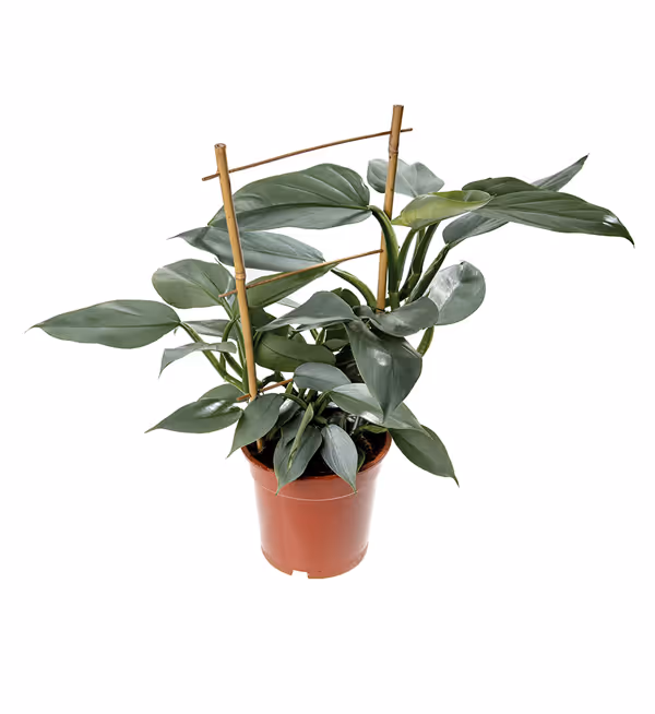 Philodendron hastatum Grey, a.k.a. Philodendron domesticum, has a strong climbing habit. This decorative, tropical foliage plant has elongated, shiny leaves. The leaf colour starts off in pale grey to dark green, becoming metallic grey or bluish silver over time. Philodendron hastatum originally is an evergreen perennial shrub, native to South America. There it grows and climbs abundantly in tropical rainforests. As a vining Philodendron, it grows up nearby trees and other plants to break through the canopy of leaves, towards daylight. It makes for a great, lively houseplant, supported by a moss poll or a trellis. Philodendron hastatum Grey is commonly known as Silver Sword Philodendron. Evanthia has Philodendron hastatum Grey starting material available all year round, as tissue culture young plant. Ask our team for the Philodendron cultivation manual for commercial production. Check out all Philodendrons in the Evanthia range.