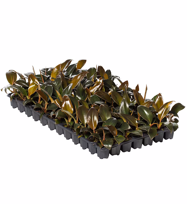 Philodendron Imperial Red is a gorgeous, tropical foliage plant has large, oval-rounded glossy leaves. The leaf colour starts off as bright reddish/green and turns more dark red to dark green over time. Its densely-growing, leathery leaves fan out from a strong central stem. Imperial Red is a non-vining, self-heading Philodendron with a compact habit. Philodendron is native to South America, where it grows as an evergreen perennial in tropical rainforests. As an houseplant it is in high demand for its glossy appearance, easy care and air-purifying qualities. Evanthia has Philodendron Imperial Red starting material available all year round, as tissue culture young plants. Philodendron Imperial Red is the perfect match to grow and sell together with Philodendron Imperial Green. It is commonly known as Imperial Red Philodendron, Imperial Red or Sweetheart Plant. Ask our team for the Philodendron cultivation manual for commercial production. Check out all Philodendrons in the Evanthia range.