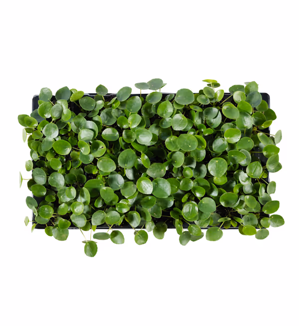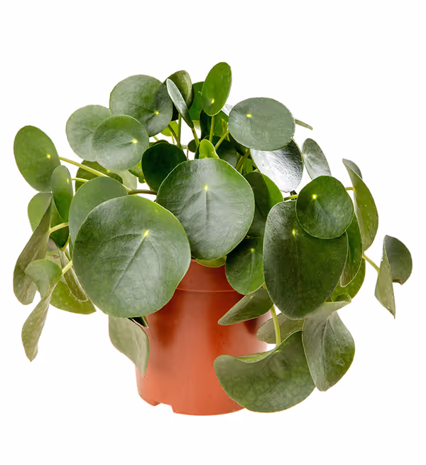 Pilea peperomioides is a tropical foliage plant has extraordinary flat, round leaves on long, slender stems. The leaves are bright green and waxy. The stems initially grow upright, but more lush and freely over time, but remaining quite low-growing and compact. Pilea peperomioides is native to South-West China, where it grows as an herbaceous perennial on shady, damp rocks in the tropical forests on the foot of the Himalaya. As a houseplant this Pilea makes for a great sculptural eyecatcher. Pilea peperomioides is commonly known as Chinese money plant. Other internationally used common names for Pilea peperomioides are: Missionary plant; Coin plant; Pancake plant. Evanthia has Pilea peperomioides starting material available all year round, as young plants from rooted cuttings.
