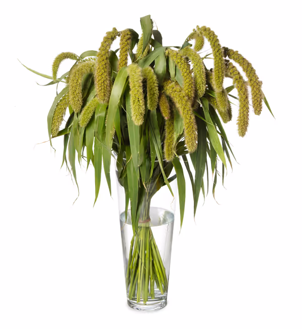 Discover Setaria, a lovely lush ornamental ‘foxtail’ grass, with waving cuddly plumes for a playful effect. We offer both Setaria italica and Setaria macrocheata, which match great together. With their fresh green to warm bronze colours and broad decorative leaves, they are ideal for summer and autumn bouquets. Both can be sown directly outdoors from spring to early summer.