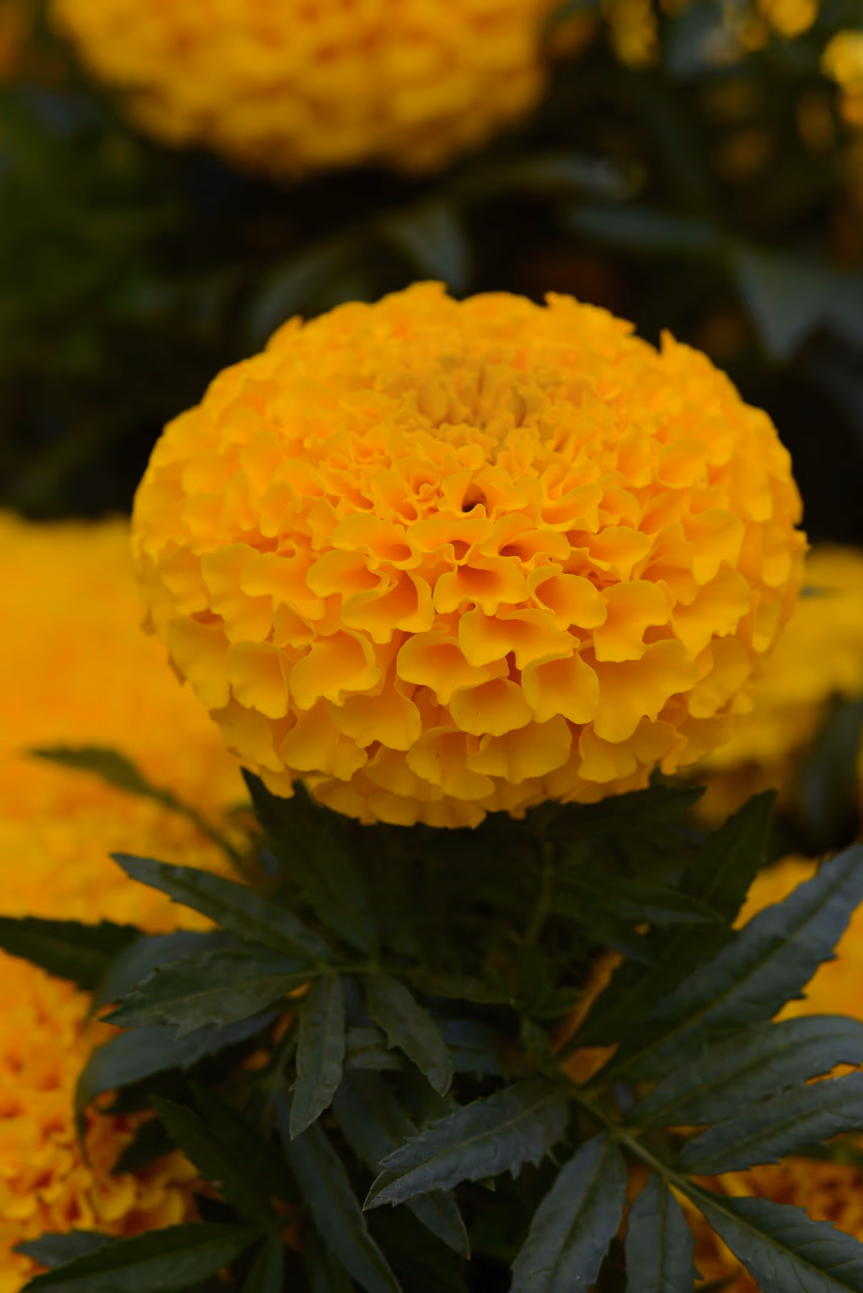Taishan® is the best dwarf African marigold for landscapes – 20% shorter peduncles and 15% thicker stems assure less stretch and breakage. Big, tightly petalled blooms on super-strong stems look terrific at retail with less waste, better overhead watering tolerance and longer shelf life. Better branching with more aggressive side branching fills packs quickly and delivers a healthier look. Larger flowers hold their doubleness and shed water well. Performance is so spectacular that Taishan was featured in landscapes at the 2008 Olympic Games in Beijing, China Regional restrictions. North America