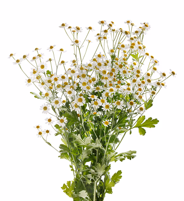 Tanacetum Campagne is a beautiful single-flowered Tanacetum with a semi-circular golden yellow centre surrounded by brilliant white petals. The stems have good branching, very rich flowering and beautifully contrasting, dark green leaves of excellent quality. Tanacetum Campagne can be grown in the greenhouse in a stable year-round programme. It is the perfect choice for a natural look in field bouquets, a cheerful bouquet filler or for lush flower arrangements.
