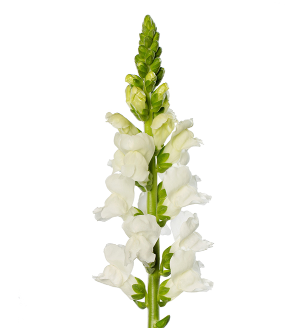 Antirrhinum Antibes White I maakt frisse witte, volle bloemaren. Met deze variėteit ben je verzekerd van een rijke toevoer van hoge kwaliteit Leeuwenbekken, in een periode waarin wit één van de meest gevraagde kleuren is. De Antirrhinum Antibes I serie is ideaal voor energiezuinige teelt in koele periodes met een lage lichtintensiteit. Antibes kan in de kas worden geplant in de nazomer en in de winter. Ervaar de uitbundige bloei en topkwaliteit bloemstelen van midden herfst tot midden lente. Antibes heeft een breed kleurenpalet en een hoge mate van uniformiteit in plant groeiwijze en bloeitijd. Combineer met de andere Antirrhinum series van Evanthia, voor een naadloos jaarrond programma.