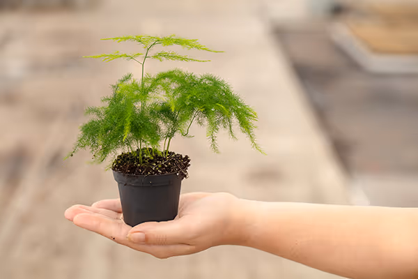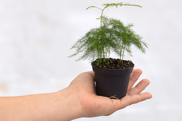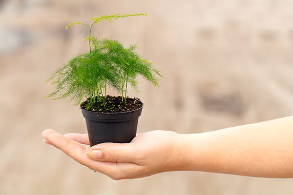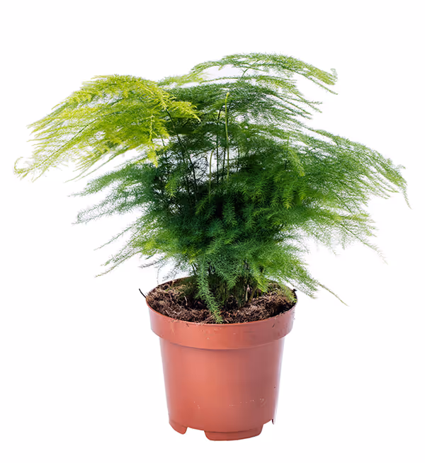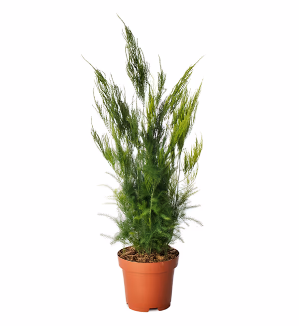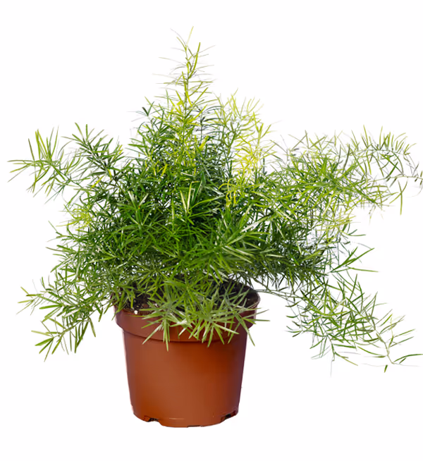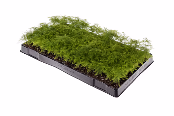 Asparagus setaceus plumosus nanus is een snelgroeiende klimplant. Deze robuuste, decoratieve groene plant heeft een zacht uiterlijk met kleine, zeer fijne naaldachtige blaadjes. Toch kunnen de stengels ook doorns hebben. Asparagus setaceus komt van oorsprong voor in tropische en subtropische delen van oostelijk en zuidelijk Afrika, waar het als vaste plant groeit in regenwouden en langs bosranden. Asparagus setaceus plumosus nanus kan worden gekweekt als kamerplant en als bladvulling voor snijbloemboeketten. Het is ook bekend als Sierasperge of Pluimasperge. Andere internationaal gebruikte namen voor Asparagus setaceus plumosus nanus zijn: Plumosa fern; Asparagus fern; Lace fern; Climbing asparagus fern. Evanthia heeft het hele jaar door Asparagus setaceus plumosus nanus startmateriaal beschikbaar, als zaad en jonge planten uit zaad. Vraag ons team naar de Asparagus teelthandleiding voor commerciėle productie. Bekijk alle Asparagus in het Evanthia assortiment.