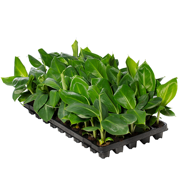 Musa acuminata Dwarf Cavendish is een populaire kleinblijvende bananenplant. Deze decoratieve, bladplant heeft een compacte groeiwijze en een korte stam. Het heeft grote, peddelvormige groene bladeren met een ongewoon roodachtig gevlekt bladpatroon. Musa acuminata komt van oorsprong voor als vaste plant in subtropische delen van Zuidoost-Aziė, waar het groeit in vochtige regenwouden. Deze compacte Musa acuminata Dwarf Cavendish wordt meestal gekweekt als decoratieve kamerplant en gewaardeerd om zijn luchtzuiverende kwaliteiten. Het is nauw verwant aan de variėteiten die voor de commerciėle fruitteelt worden gebruikt en ook de Musa acuminata Dwarf Cavendish produceert na verloop van tijd heerlijke eetbare vruchten. Musa acuminata Dwarf Cavendish is internationaal bekend als: Chinese Banana or Ladyfinger Banana; Dwarf Banana tree. Evanthia heeft Musa acuminata Dwarf Cavendish startmateriaal het hele jaar door beschikbaar, als jonge planten uit weefselkweek. Vraag ons team naar de Musa teelthandleiding voor commerciėle productie. Bekijk alle Musa’s in het Evanthia assortiment.