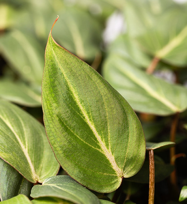 - Hartvormige bladeren met witte bladnerven en een fluwelen textuur- Maakt grotere bladeren naarmate hij ouder wordt- Volumineuze plant, kan langs een mosstok geleid worden